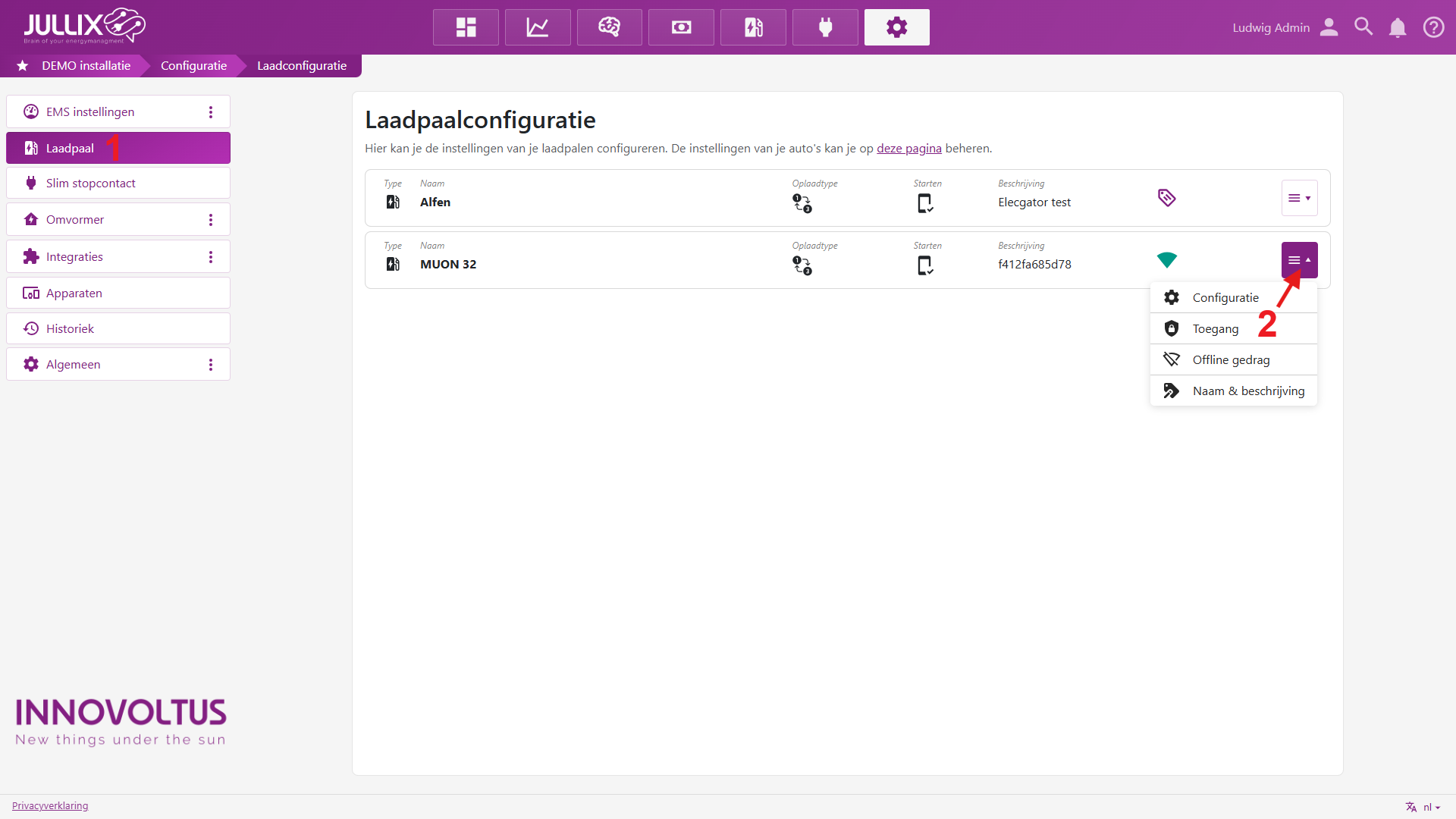 Als de laadpaal is toegevoegd vindt je deze terug bij Configuratie, onder de sectie