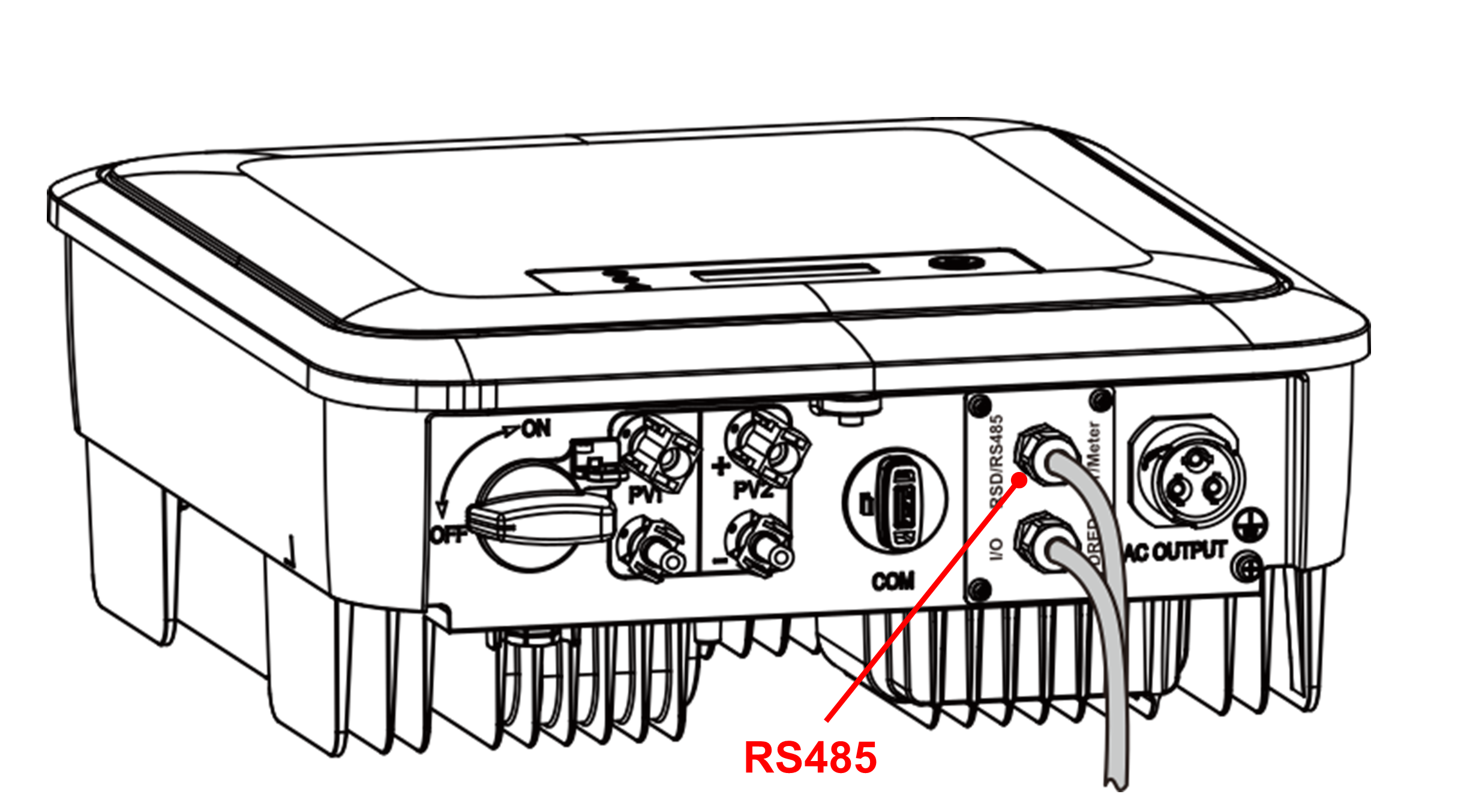 De Jullix of Extender wordt verbonden met de Goodwe DNS G3 via modbus/RS485 van de omvormer. Je vindt de Modbus aansluiting terug op de RS485 poort.