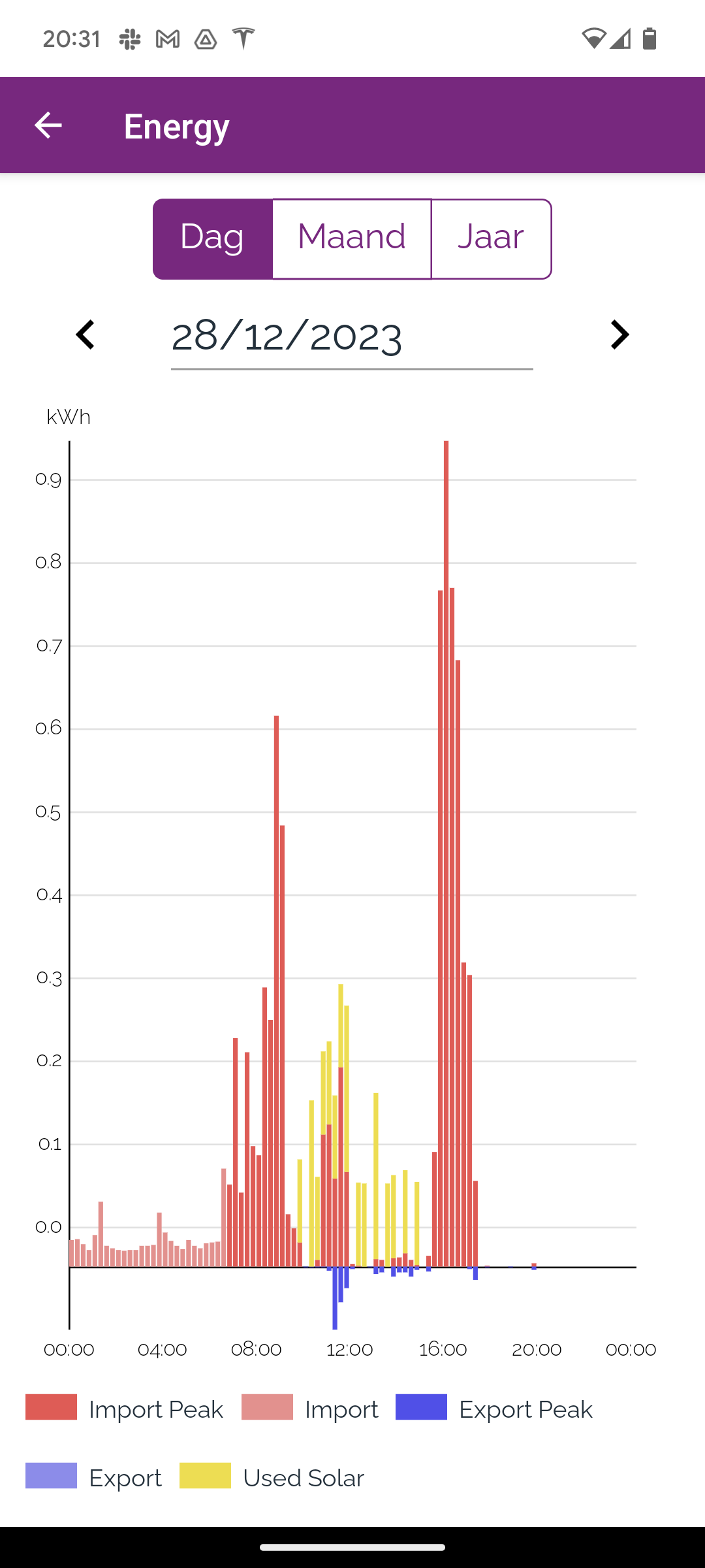 - Net Het vermogen dat van net wordt gehaald of naar het net wordt geëxporteerd.(rood)