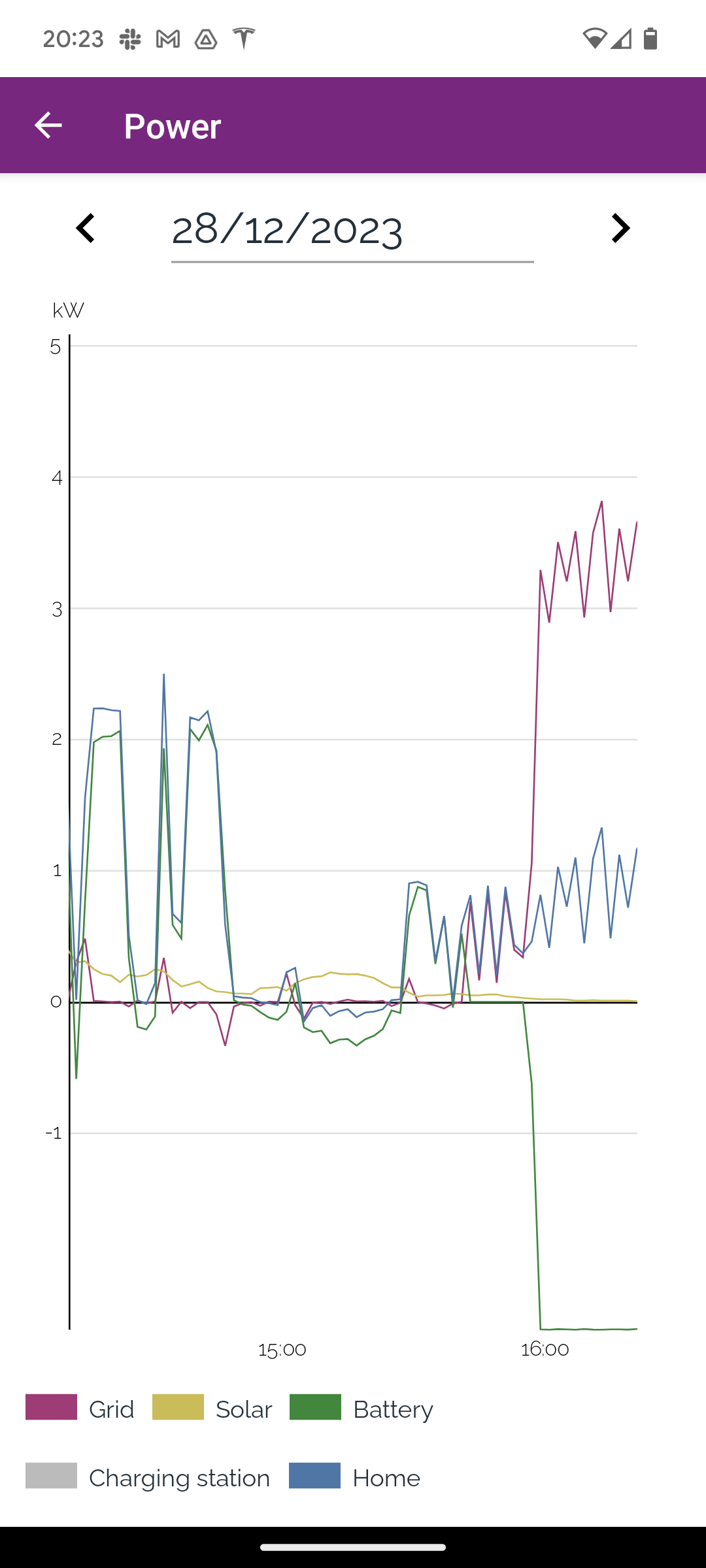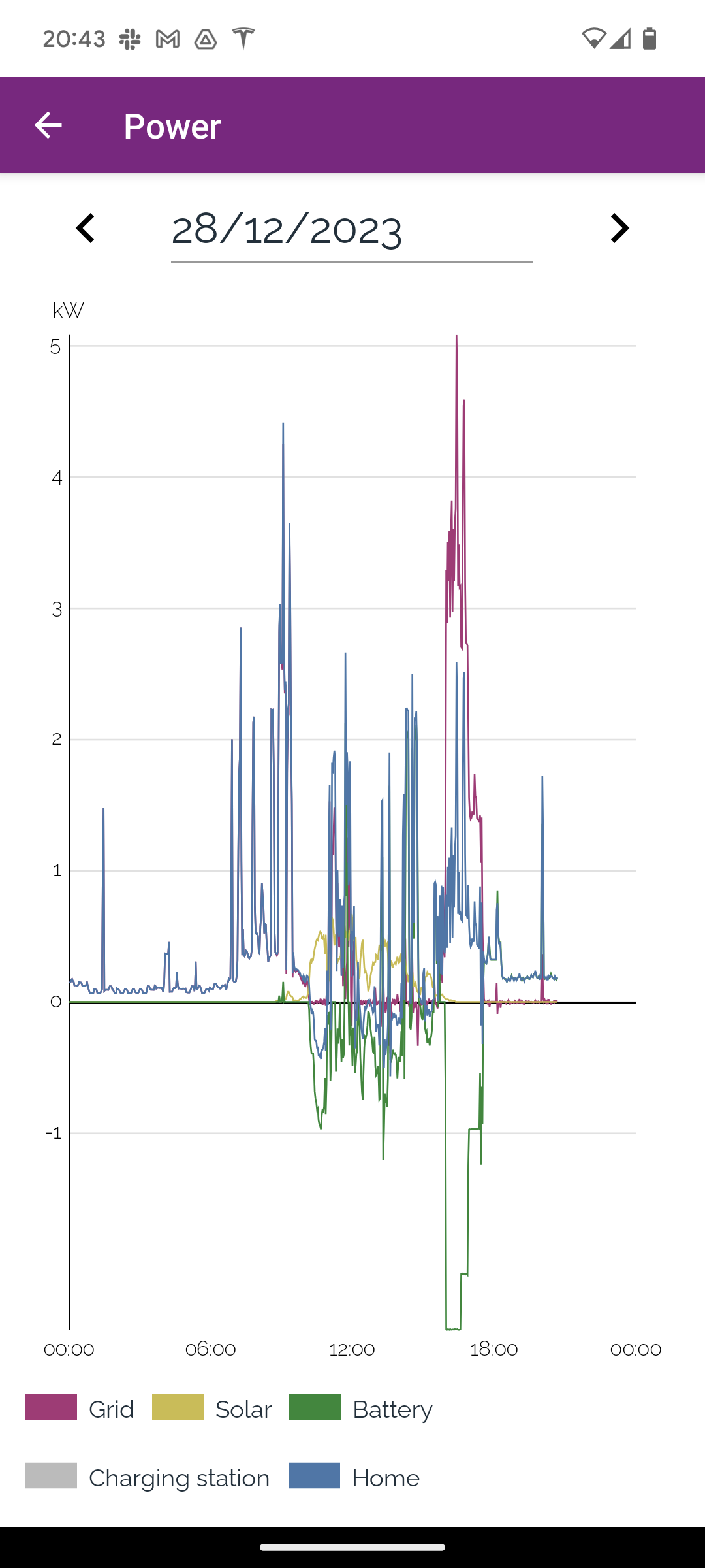 - Laadpaal Het vermogen dat naar de laadpaal gaat. (grijs)