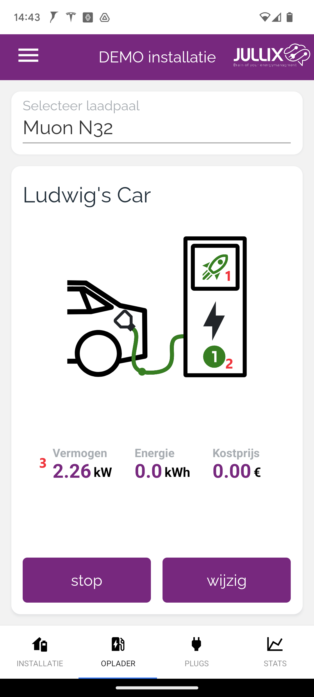 Via de Oplader pagina op de app kan je de laadpalen bedienen. De app is zo gemaakt dat je met een minimum aan handelingen het laden van je auto kan starten.