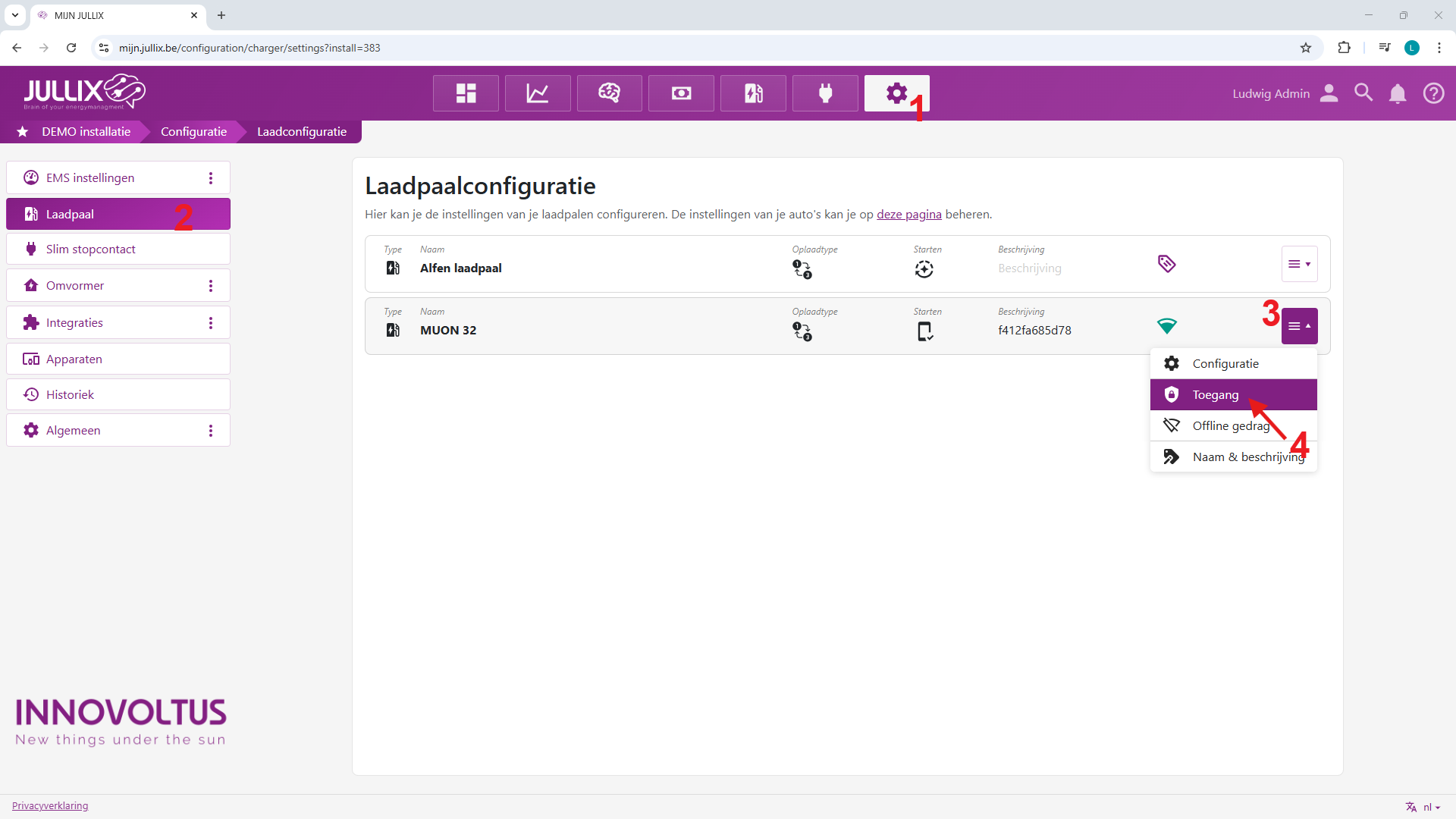 Als de laadpaal is toegevoegd vindt je deze terug bij Configuratie, onder de sectie