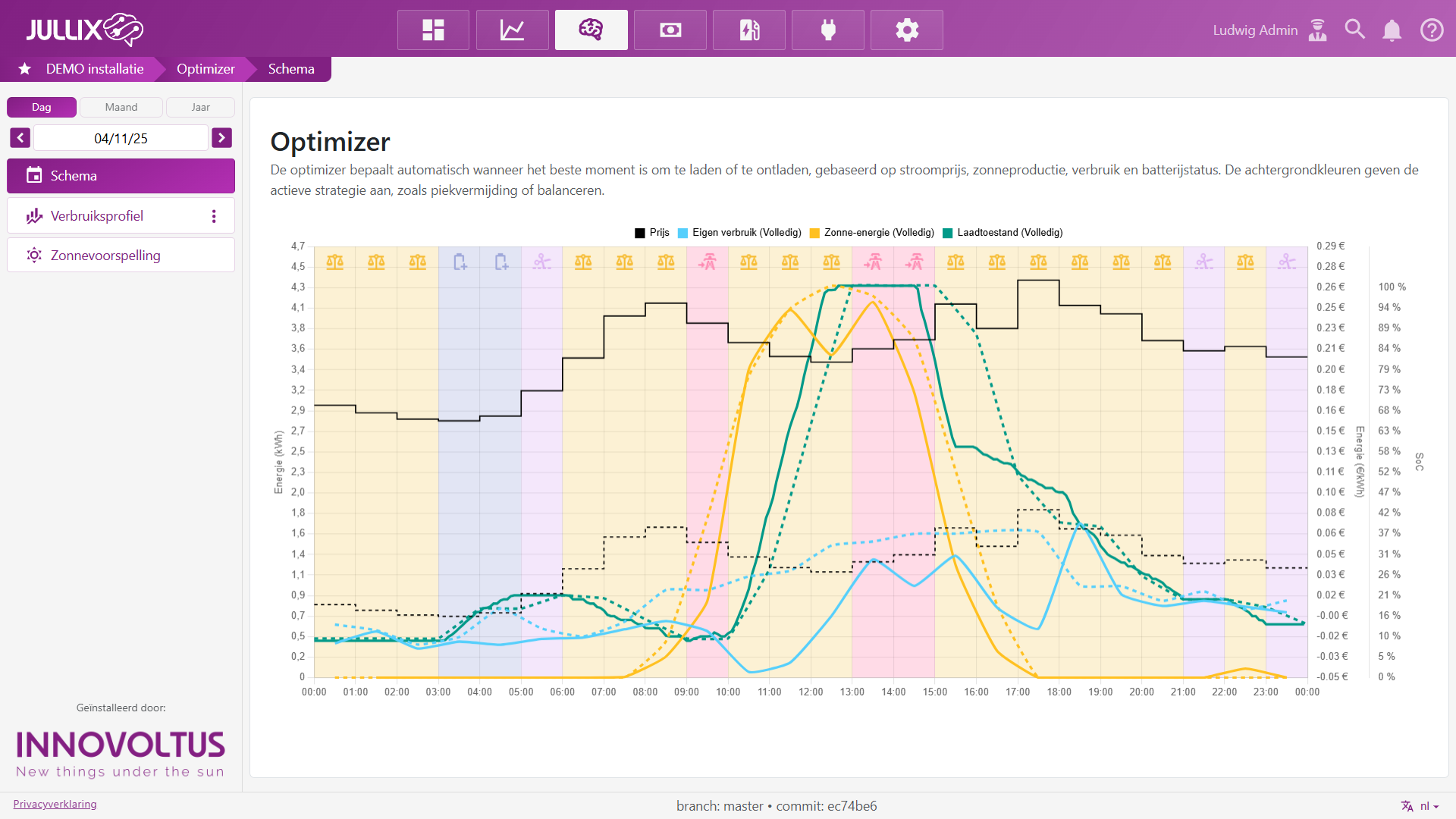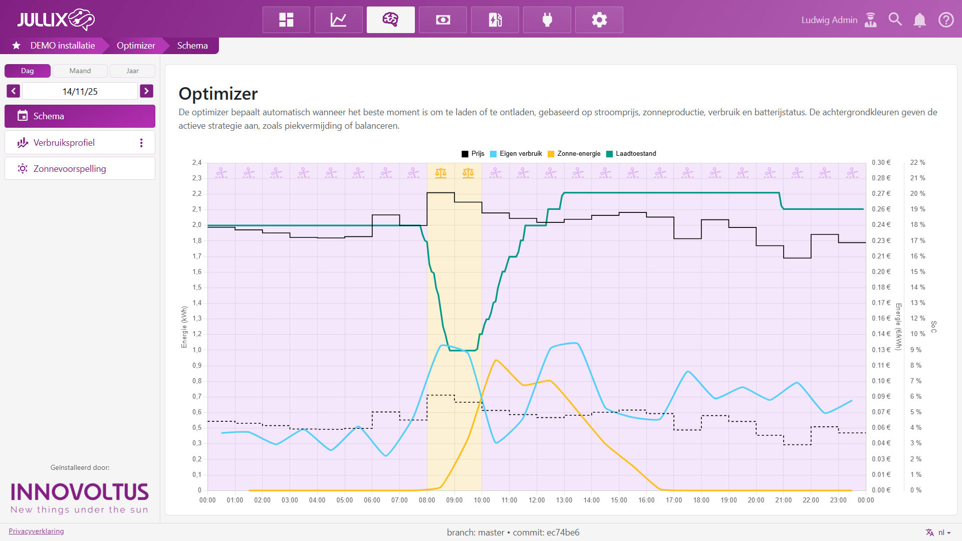 Door de Jullix optimizer in te schakelen wordt er geoptimaliseerd naar de laagst mogelijk energiekost. De Jullix Optimizer houdt daarbij rekening met alle kosten.