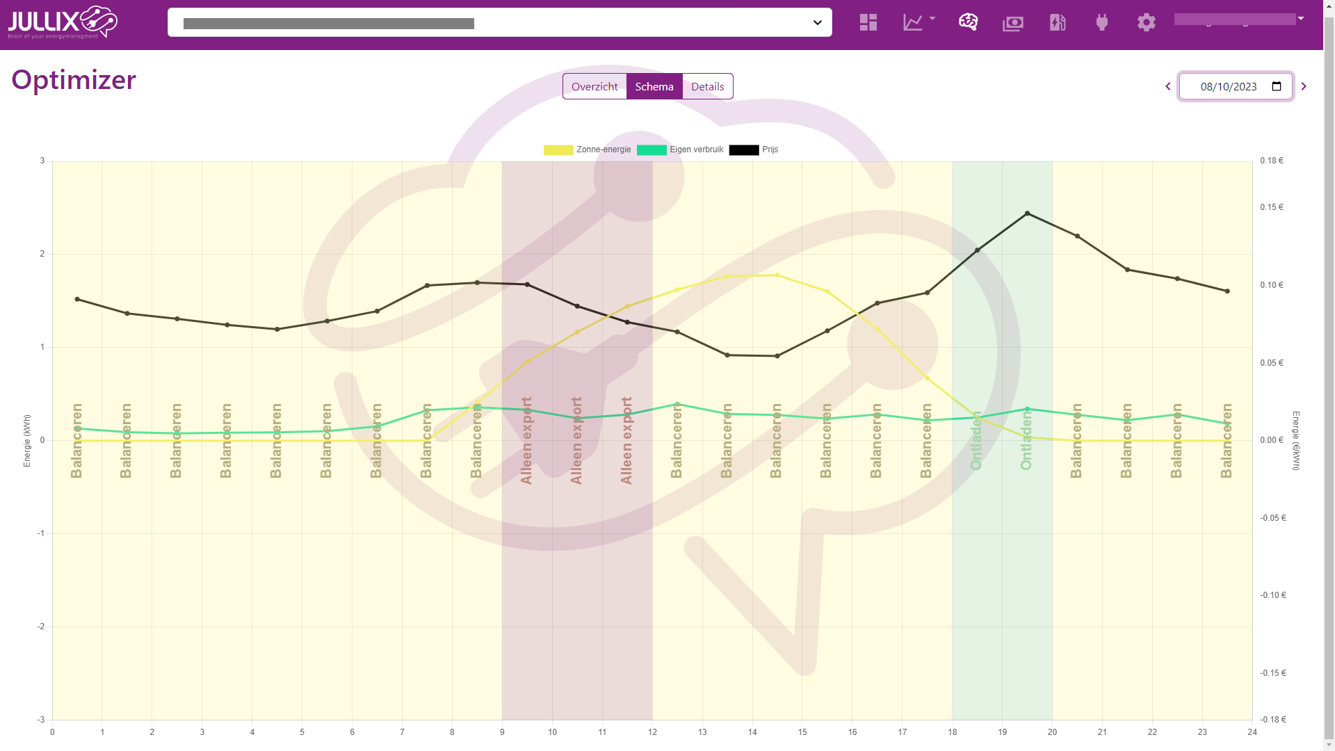 Indien men een dynamisch energietarief heeft, kan men via de optimizer in het Jullix energiemanagement nog een stap verder gaan.