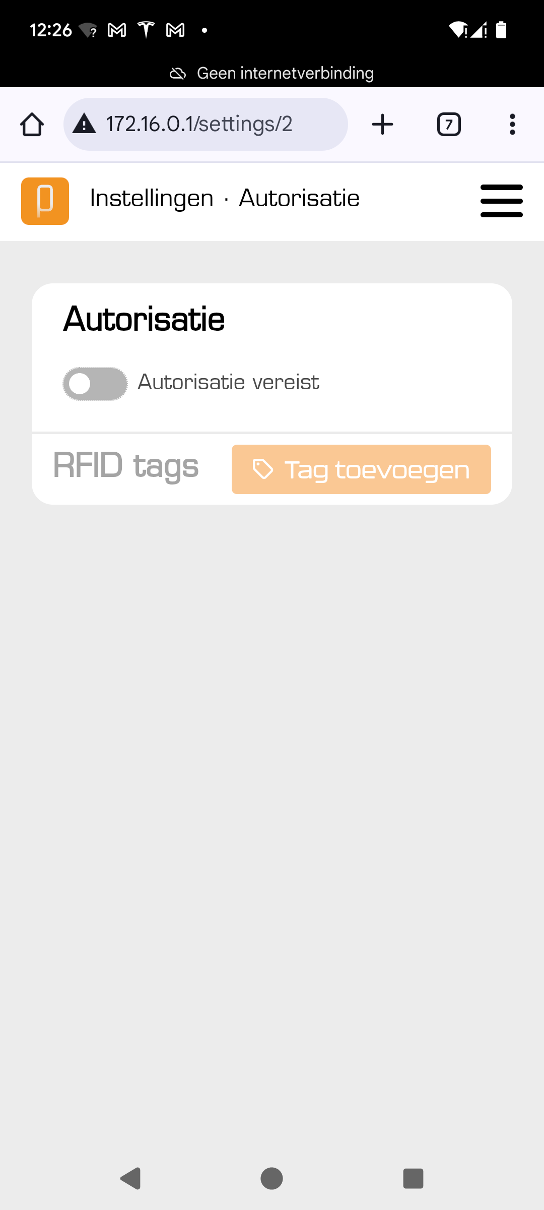 Bij Instellingen > Authorisatie kan je de authorizatie via RFID aan of uitzetten. Als je in de Jullix 'Laden via de app' kiest kan je de RFID beveiliging uitzetten, het laden wordt immers beveiligd via de besturing van de Jullix door dat je via de app het laden moet starten.