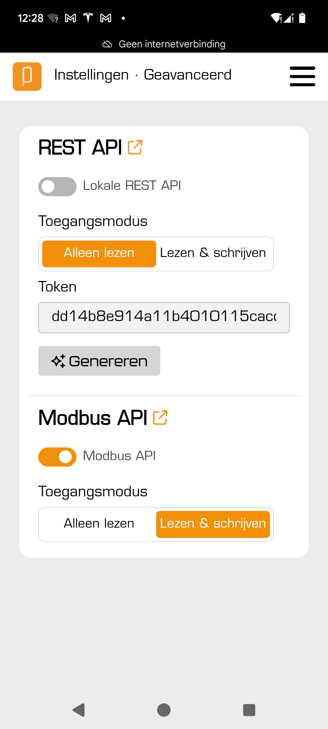 De belangrijkste instelling voor de besturing door de Jullix vind je bij Geavanceerd. Bij geavanceerd moet je Modbus API inschakelen.