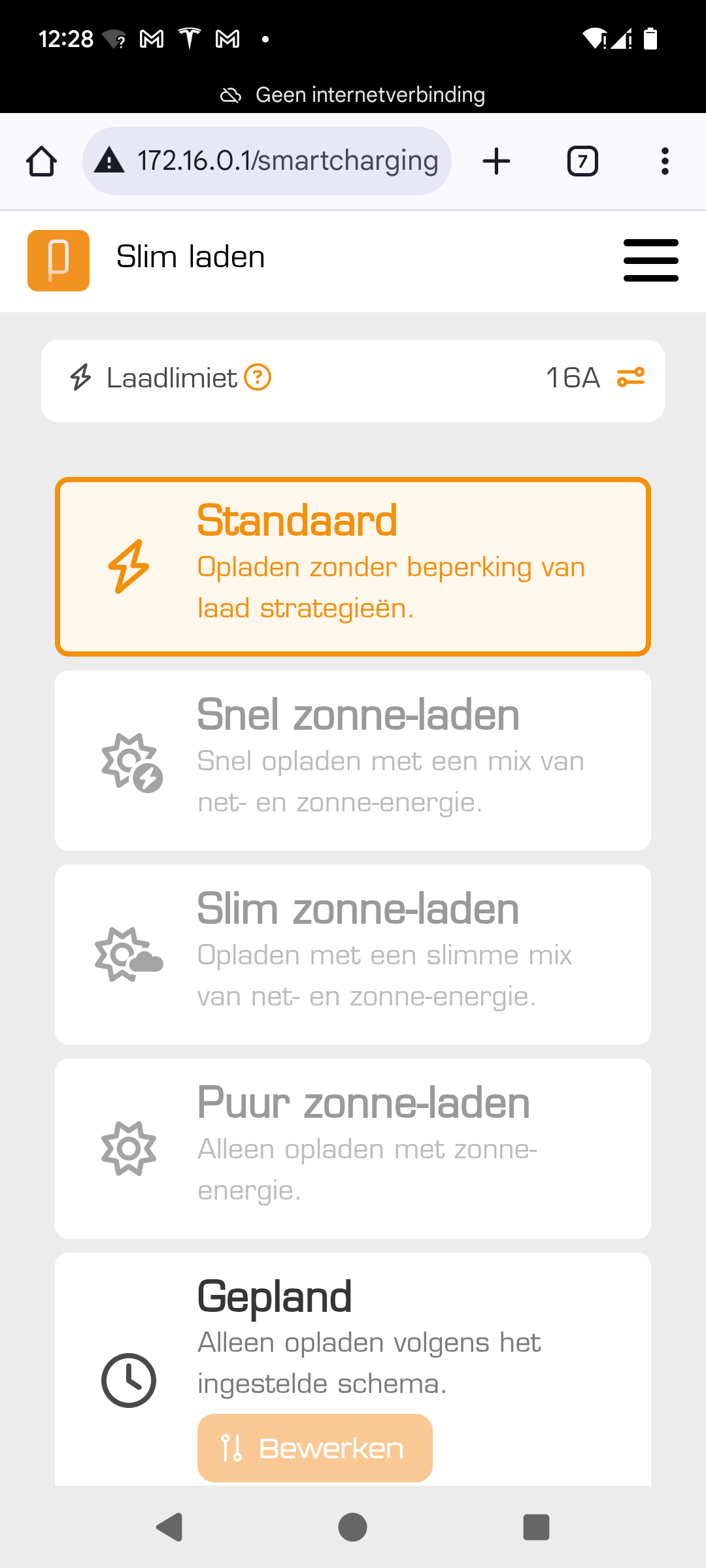 Bij Slimladen zorg kies je standaard: opladen zonder beperking van laadstrategien.