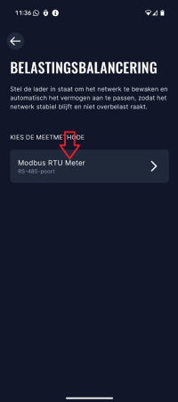 U klikt op Modbus RTU meter om vervolgens de Belastingsbalancering UIT te vinken.