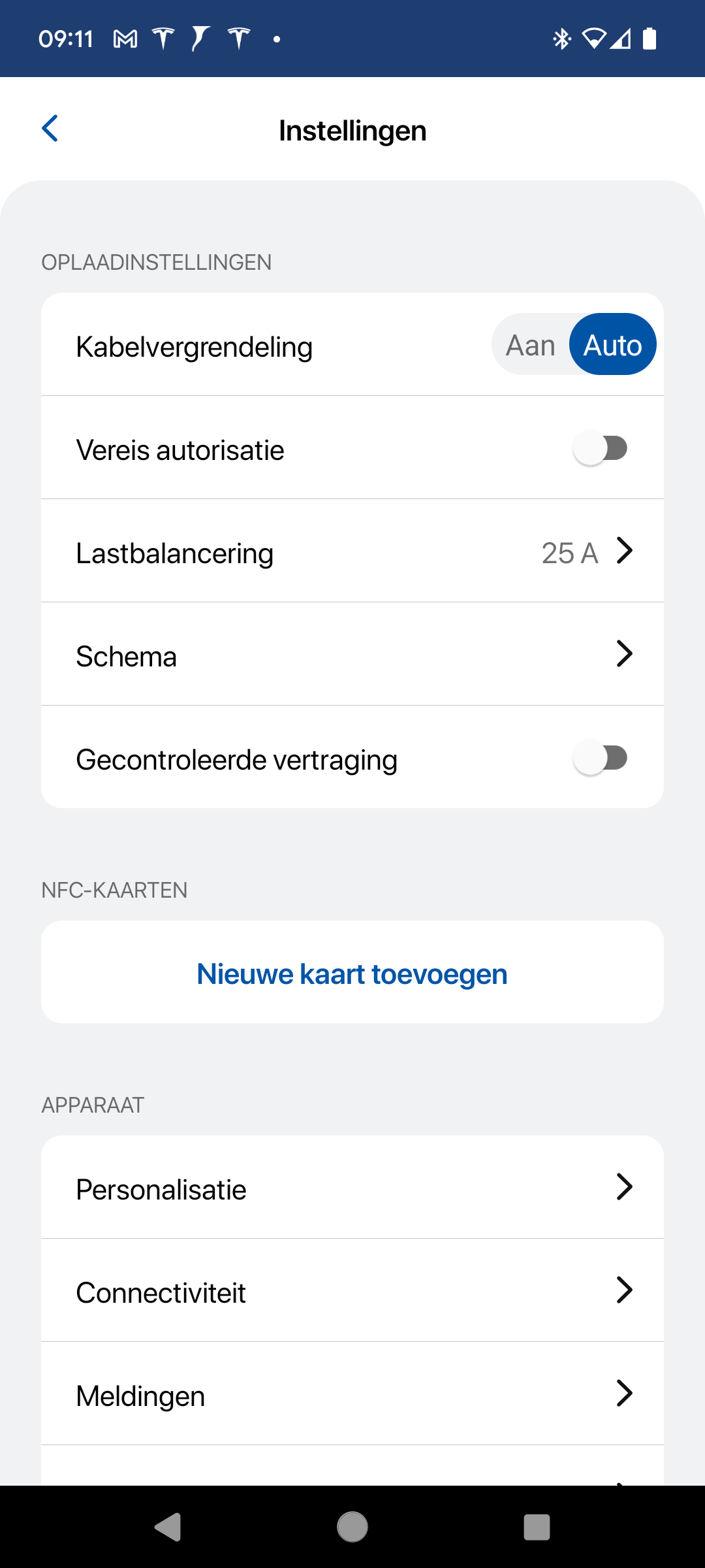 Nadat je verbinding hebt gemaakt met de laadpaal klik je op 1 Instellingen.