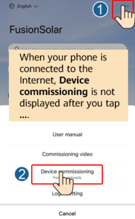 Open de FusionSolar app van HUAWEI zonder met het internet verbonden te zijn ( Wifi niet verbonden, 4G uit)