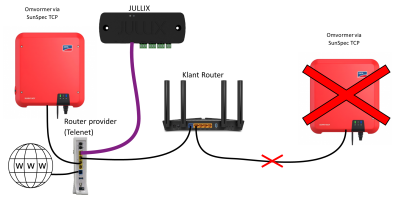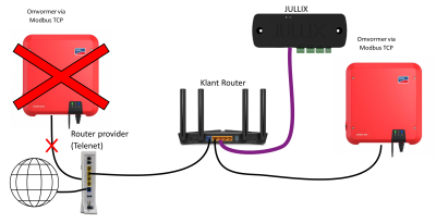 Het is belangrijk dat de SMA omvormer verbonden is met hetzelfde netwerk als de Jullix.