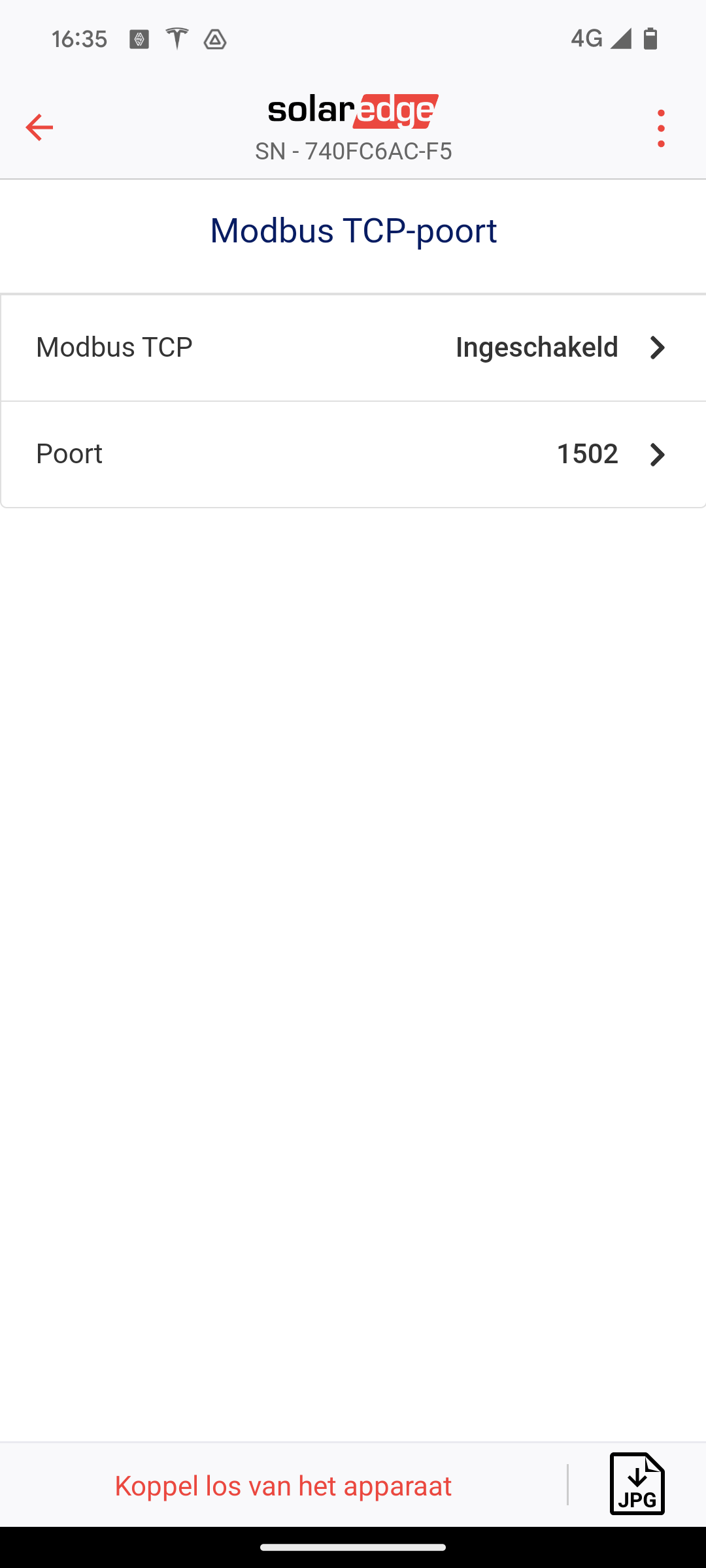 - In Modbus TCP-poort schakel je modbusTcp je krijgt dan een extra poort instelling deze is standaard 1502 en kan je zo laten