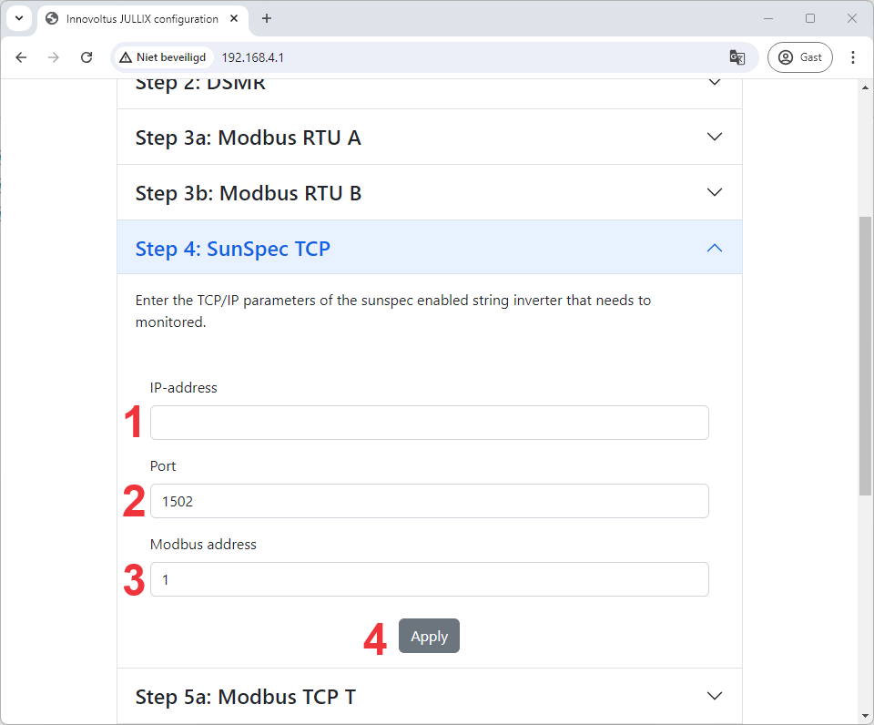 Jullix SunSpec TCP configuratie