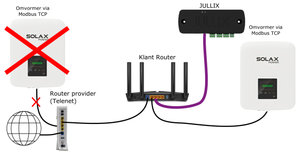 Of je kan Jullix via de router van de klant met het internet verbinden.