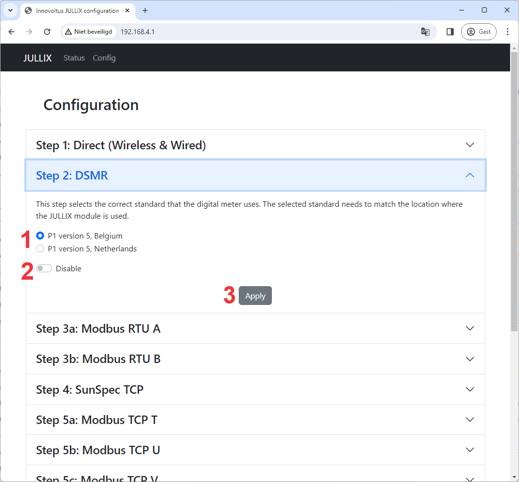 Je bent hier: start » nl » Jullix » Jullix configureren » Step 2: DSMR