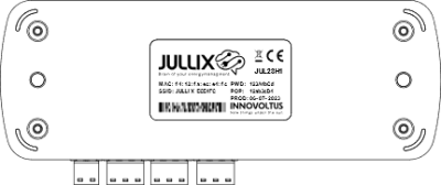 Het brein van Jullix is een compacte module die tegen de muur wordt bevestigd. In het ideale geval wordt de Jullix dichtbij de digitale meter, internetverbinding en de omvormers geplaatst. De Jullix wordt tegen de muur bevestigd en heeft hiervoor twee bevestigingsgaten. Twee multi-color LED indicatoren geven de toestand van het apparaat weer.