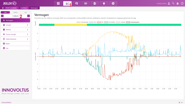 In het menu 2 kun je de verschillende grafieken van je energiebeheer bekijken.