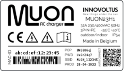 Aan de achterzijde, in het deksel van de laadpaal bevindt zich de sticker met de identificatie- en logingegevens.